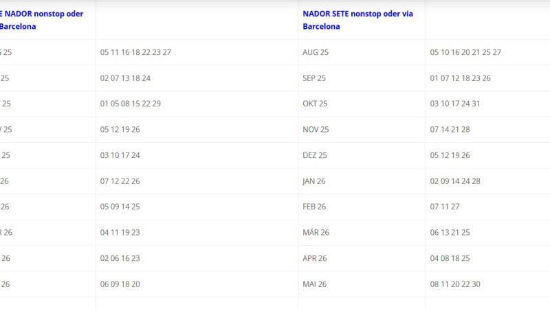 Ihr könnt die Anreise und Rückreise als One-Way-Trips buchen und beispielsweise die Hinreise bis Tanger wählen, die Rückreise ab Nador. Das macht preislich keinen Unterschied.