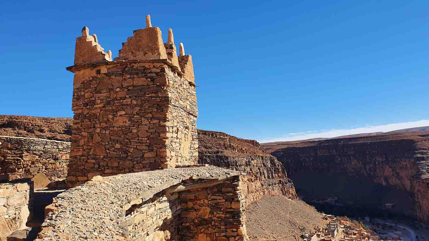Tag 14: Über Tata geht es entlang der N 12 westwärt. Bei Icht biegen wir rechts nach Nordwesten ab, um uns einem weiteren Kulturhighlight Marokkos zu nähern: dem Agadir (Speicherburg) in Amtoudi.