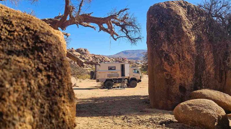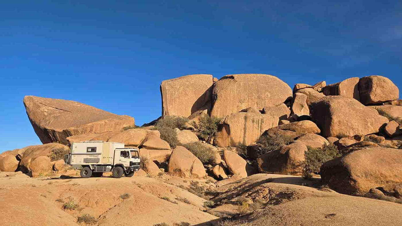 Je nach Timing besuchen wir zuerst die Blauen Felsen, wo wir auf Pisten zwischen denselben herumfahren können oder wir suchen gleich unseren Übernachtungsplatz auf, um am nächsten Morgen zu den Blauen Felsen zu fahren.