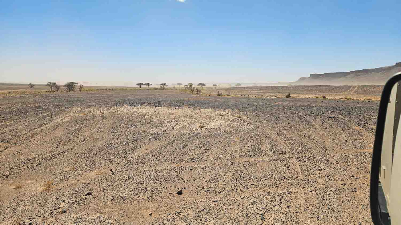 Tag 10, 11: Von Merzouga geht es zunächst auf Asphalt, dann auf Piste, entlang der Algerischen Grenze nach Süden. Die Piste ist sehr abwechslungsreich, sowohl was den Untergrund als auch die Landschaft anbelangt. Harte Ton- und Schotter-Passagen wechseln sich mit Weichsandfeldern und FechFech-Passagen ab.