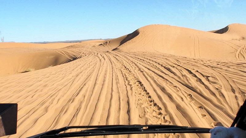 Von Ramlia geht's über Piste nach Touz, wo wir wieder auf Asphalt treffen. Von hier ist es nur noch ein Katzensprung bis zum Erg Chebbi, den wir gleich bei der ersten Einfahrt erkunden werden, um uns einen schönen Übernachtungsplatz in den Dünen zu suchen. Am nächsten Tag ist wieder Sandspielen mit den Fahrzeugen angesagt. Hier werden wir das, was wir im Erg Chegaga gelernt haben, vertiefen. Und nicht nur das, sondern wahrscheinlich auch wieder das eine oder andere Fahrzeug. Also üben wir weiter das Bergen mit und ohne Fahrzeughilfe, so dass euer Selbstbewusstsein in Sachen Selbstbefreiung quasi stündlich wächst.