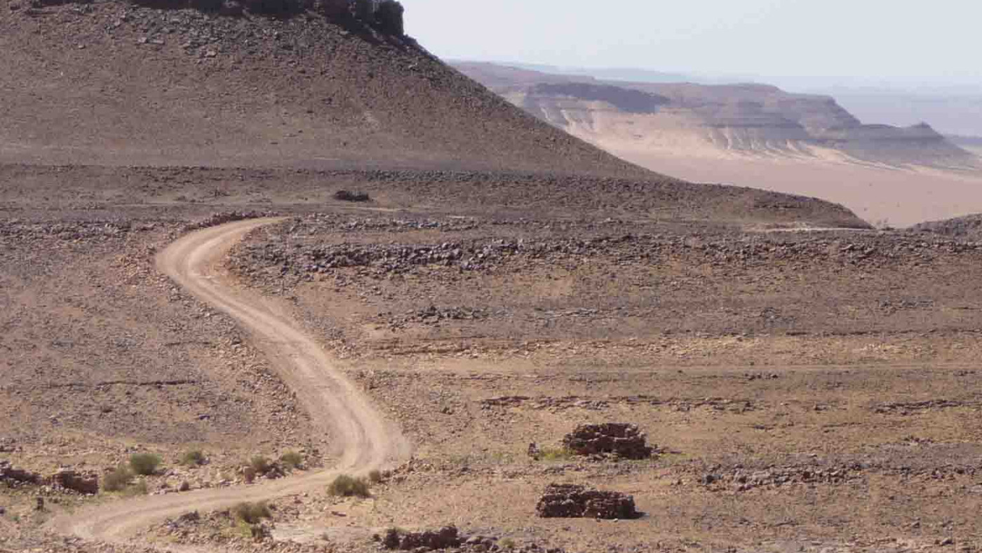 Nach zwei Nächten in Zagora zieht es uns wieder in die Wüste. Wenige Kilometer hinter der Stadt verlassen wir den Asphalt und biegen auf die Piste ab, die uns über Ramlia und Taouz zum Erg Chebbi und nach Merzouga führt. Auf der Piste müssen wir mindestens einmal übernachten. Sie führt teils durch steiniges und felsiges Gebiet, teils aber auch durch Weichsand- und Fech-Fech-Felder.