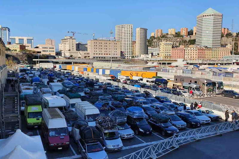 Die Fähre ab Genua kommt am Montag, 21.12. gegen 16 Uhr in Tanger an. Da mit Verspätung zu rechnen ist und die Zollformalitäten durchaus auch mal vier Stunden in Anspruch nehmen können, bis alle Teilnehmer durch den Zoll sind, solltet Ihr davon ausgehen, auf dem Parkplatz im Hafen von Tanger Med zu übernachten und am nächsten Morgen gemeinsam in Richtung Marrakesch aufbrechen. Der Übernachtungsplatz im Hafen von Tanger Med ist absolut sicher, weil er sich noch im geschlossenen Bereich des Terminals direkt nach dem Zoll befindet. Hier kann man auch bei der Rückreise sicher und halbwegs ruhig übernachten.
